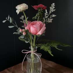 Price: $75.00PETITE SEASONAL ARRANGEMENT IN GLASS VASE, DESIGNER'S CHOICE